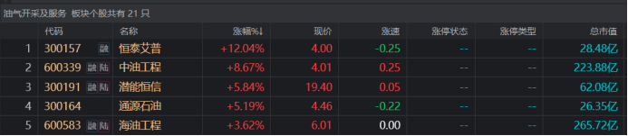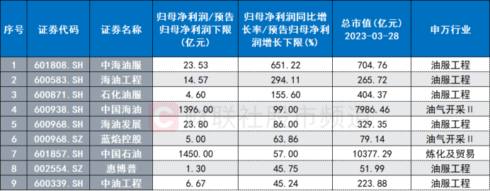 注:业绩增速居前的石油石化个股(截至3月28日收盘)