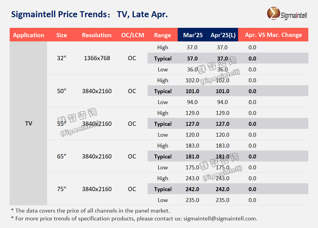 50",品牌需求韧性较弱,3月面板价格持平,预计4月维持。