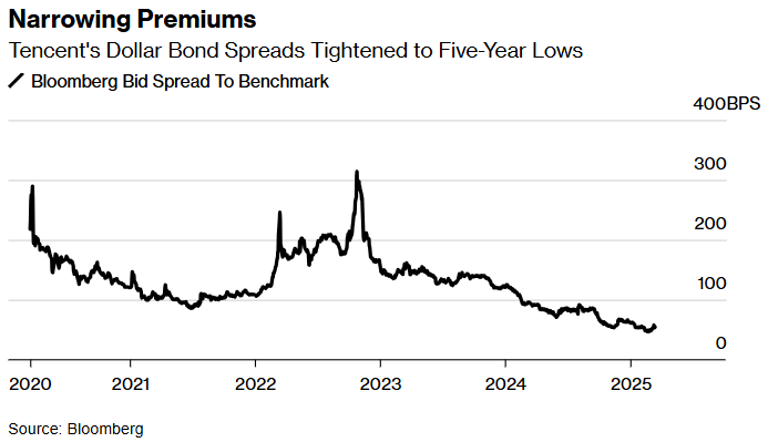 "优质资产稀缺性凸显,国家信用背书债券遭抢购。"星展银行策略师Chang Wei Liang指出,当前市场呈现典型的卖方市场特征。二级市场的火热更具说服力:腾讯2029年到期美债利差已缩至五年最低。中国的高收益美元债券平均而言,相对于美国同类债券的溢价处于七个月以来的最低水平。
