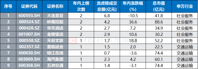 对于可关注标的方面,筛选旅游、酒店、免税、出行链等相关板块个股,*ST云网、大连圣亚、ST张家界、海汽集团、岭南控股、凯撒旅业、锦江在线、华天酒店、天府文旅、金陵饭店年内涨停次数相对较多。此外,从龙虎榜登榜次数来看,大连圣亚、岭南控股、华天酒店、金陵饭店年内登榜次数相对较多。