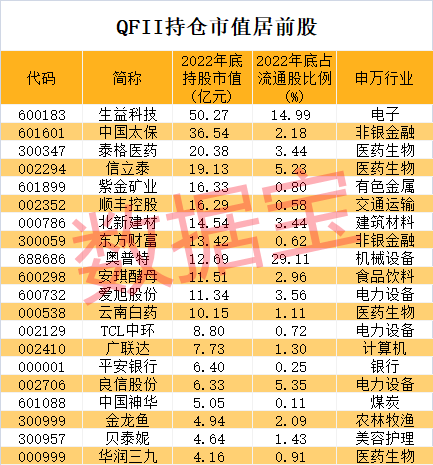 随着2022年年报陆续披露,QFII(合格境外机构投资者)持仓情况逐渐浮出水面。