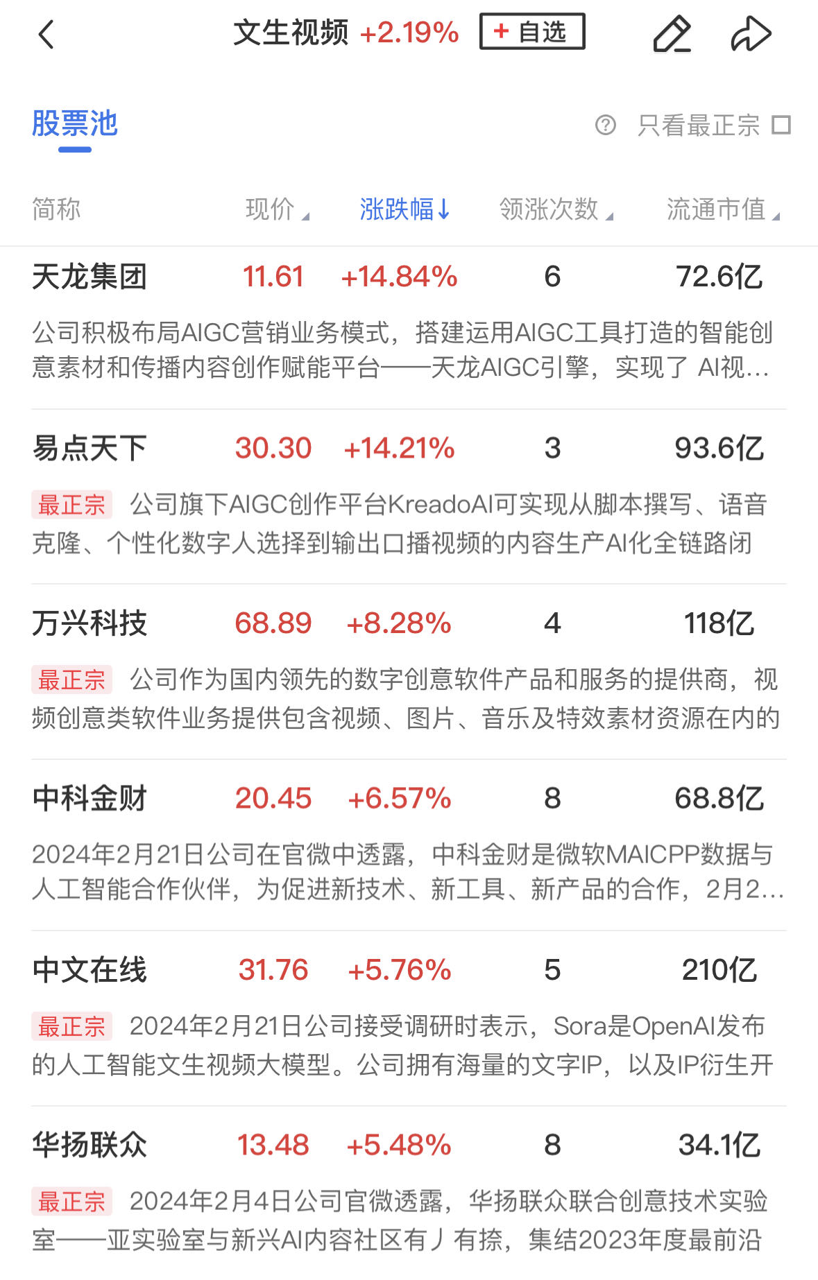 板块上,AI应用方向(文化传媒)涨幅居前,值得买、中国出版、天威视讯、返利科技涨停,易点天下、天龙集团、中国科传等个股涨跌幅居前。