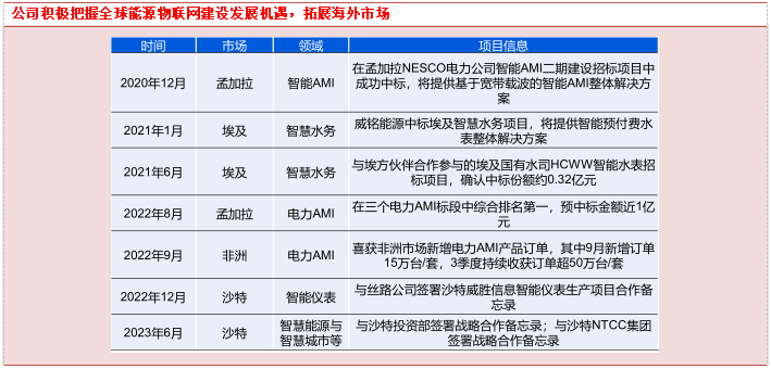 今年以来,海外市场增获老挝国家电力公司订单,提供电力AMI全套系统解决方案,在西非获4.2万台超声波水表订单,成为该国智慧水表改造计划第一批产品供应商,再次体现公司在物联网和智慧能源管理产品方面综合优势。