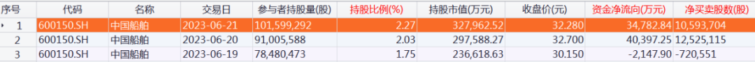 北向资金持股中国船舶明细数据