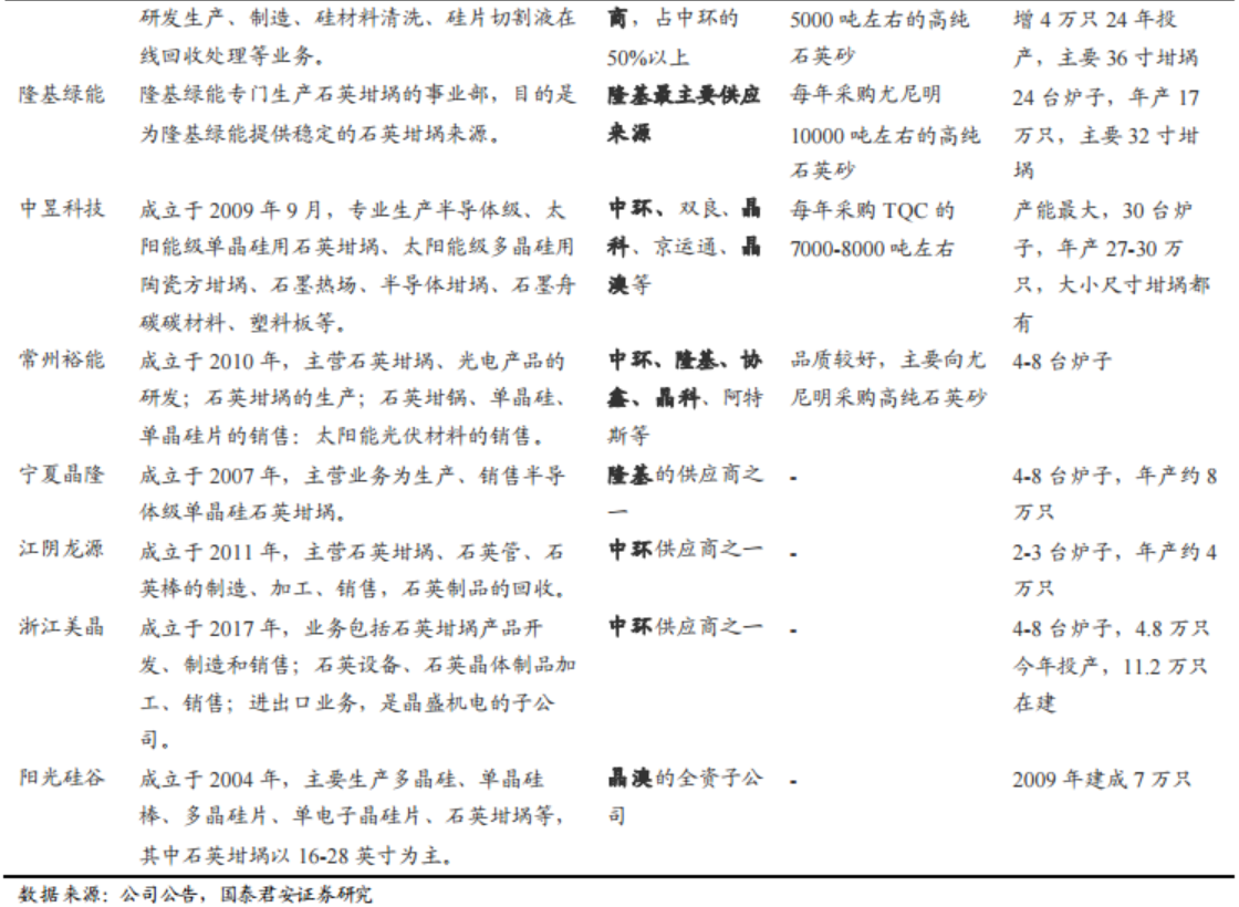 由于石英坩埚在拉制晶棒环节的重要作用,导致下游企业通常只会选取少数石英坩埚供应商为其供货,石英坩埚行业仅有少数几家企业分享到下游行业产能扩充的红利,国内石英坩埚市场份额较大的主要是欧晶科技、隆基绿能、中昱科技这3家企业,其他企业规模总体较小。