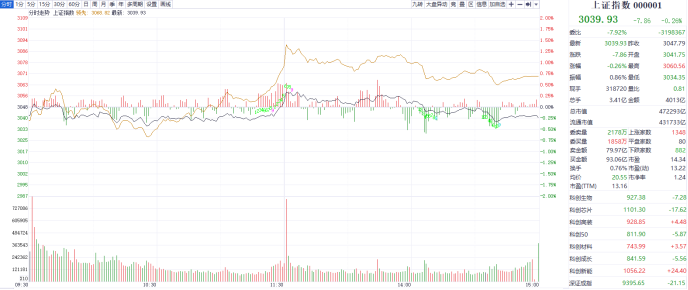 今天,市场全天震荡调整,三大指数均小幅下跌。板块上,风电、光伏等新能源赛道股集体反弹,天顺风能、海源复材、安彩高科、江苏华辰等涨停。机器人概念股午后大涨,腾亚精工、科力尔、天奇股份、合力泰等20余股涨停。飞行汽车概念股早盘冲高,金盾股份、王子新材涨停。燃气股震荡走高,美能能源、南京公用涨停。下跌方面,AI PC概念股陷入调整。总体上个股涨多跌少,全市场超3200股上涨。