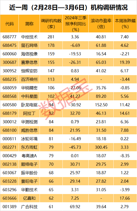 近一周,中控技术有281家机构调研,其中包括64家基金公司、23家证券公司、33家私募、22家保险、42家海外机构等。