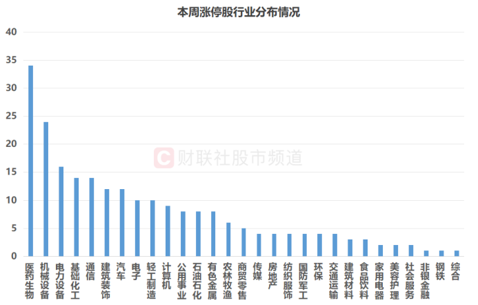 注:本周涨停股行业分布情况(截至4月5日收盘)