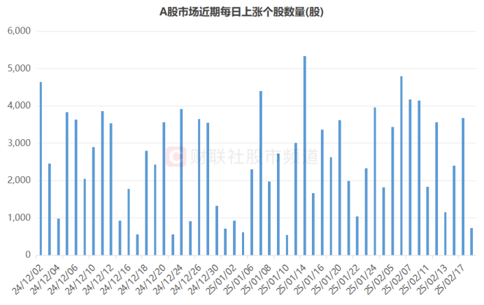 注:A股市场近期每日上涨个股数量(截至2月18日收盘)