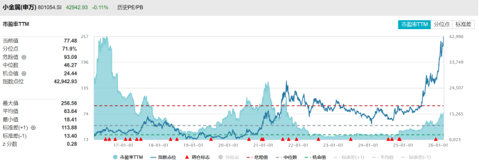 注:小金属指数目前市盈率及分位情况(截至2月26日数据)