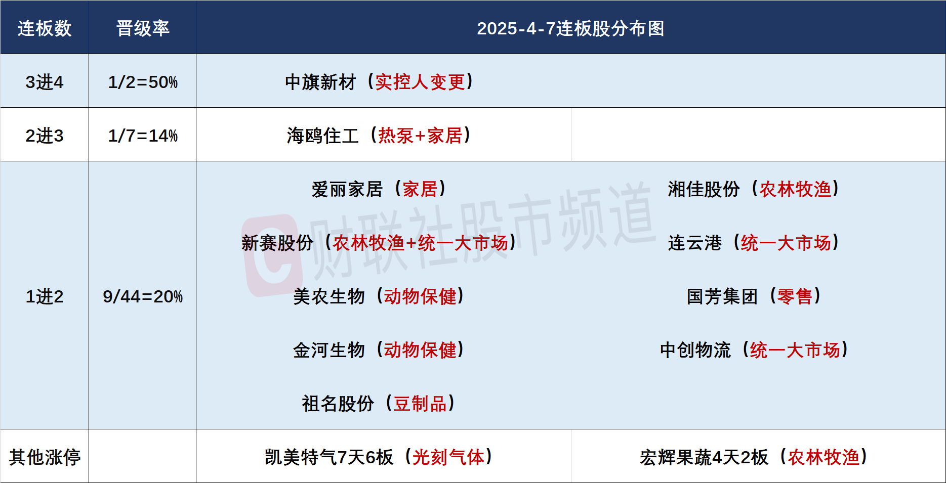 4月7日连板分析:连板晋级率22% 农业板块局部活跃