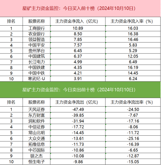 从个股主力资金监控数据来看,主力资金净流入前十的个股中银行和中字头个股较多,工商银行净流入居首。