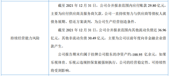 乐视网表示,截至2021年末,公司大量债务出现逾期,导致公司存在偿债压力。