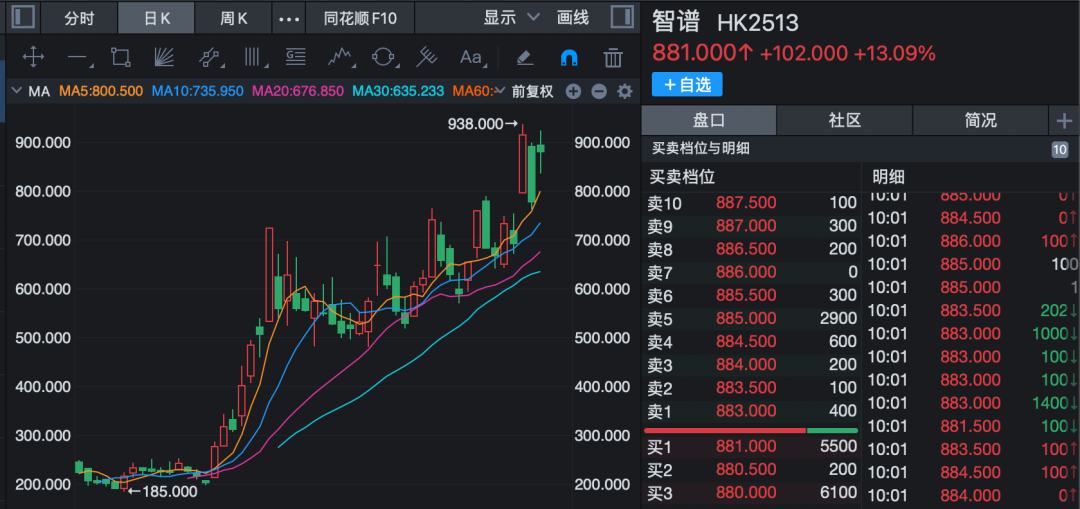 港股大模型、AI应用板块集体高开,智谱盘中一度涨近17%,最新涨幅为13.09%。