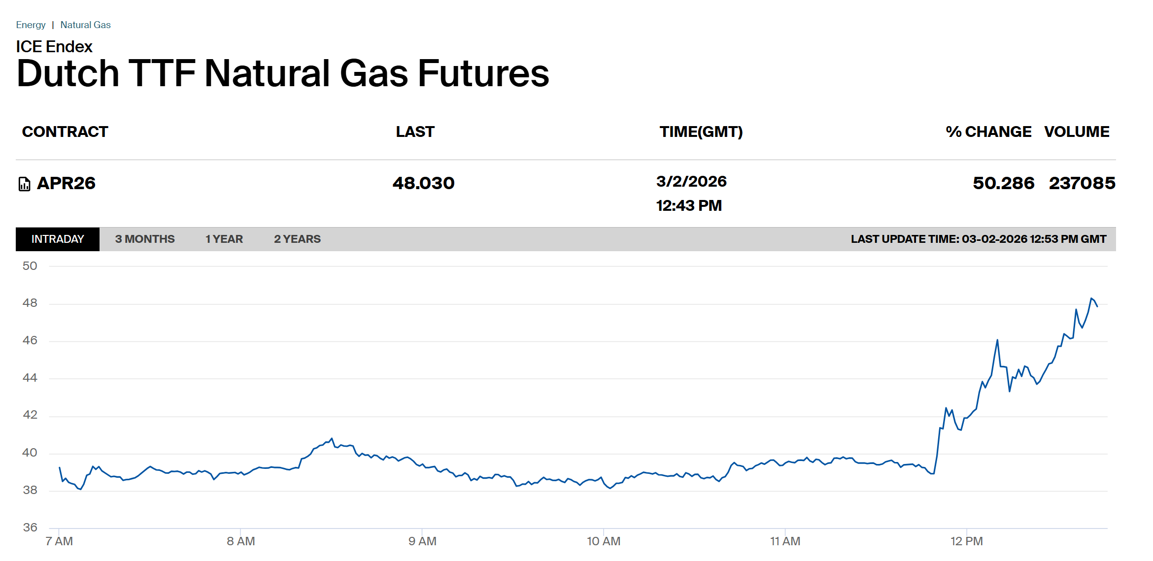 受此消息影响,欧洲TTF天然气期货短时飙涨近50%,最新报价超过47欧元/兆瓦时。