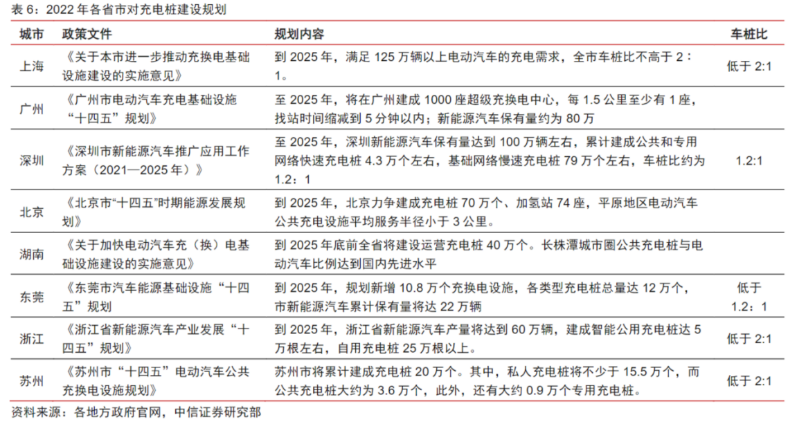 2022年各省份出台一系列政策推动新能源充电设施的建设,预计未来车桩比将逐步降低至2:1。黄亚元指出,当前充电桩建设情况距离整体规划目标还有差距,随着指导意见的修改与政策推进,预计车桩比仍有下降空间,充电桩建设仍将继续推进。