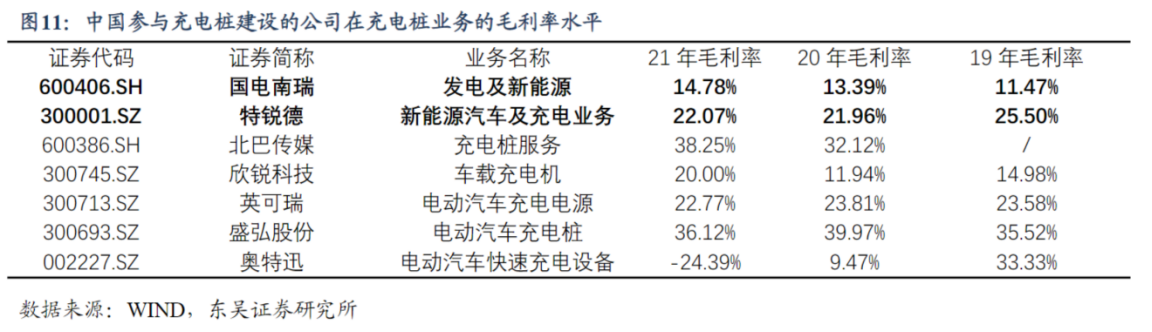 然而,杨绍辉指出,充电慢的问题依然是阻碍新能源汽车渗透率快速提升的重要因素。张良卫亦指出,海外充电桩公司,如以产品开发为主的ABB和西门子的毛利率都超过了30%,特斯拉的充电桩业务毛利也在30%左右,略高于国内公司的平均水平。