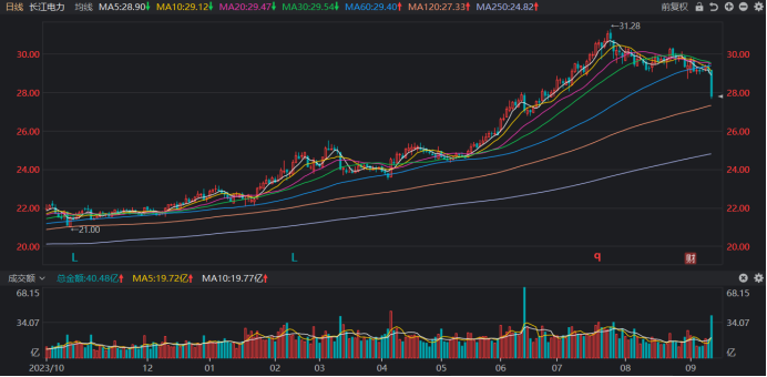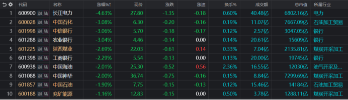 今日(9月11日),高股息权重集体走低,其中,红利“标杆股”长江电力重挫4.6%,为近2年以来最大单日跌幅,同时,其股价也创近3个月以来新低。此外,中国石化、中信银行、农业银行、陕西煤业、工商银行等红利股也跌幅明显。