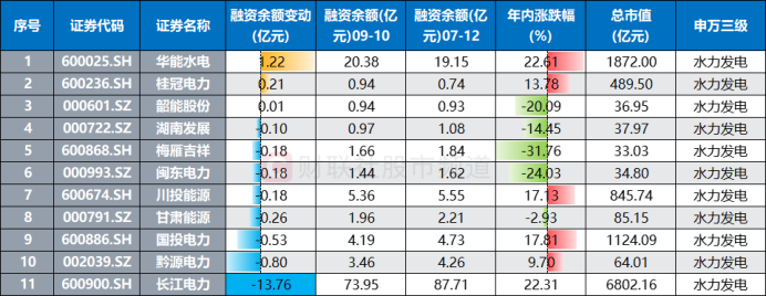 注:长江电力年内融资余额变动(截至9月10日数据)