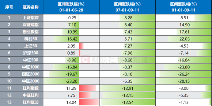 注:市场主要指数年内分段表现情况(截至9月11日收盘)