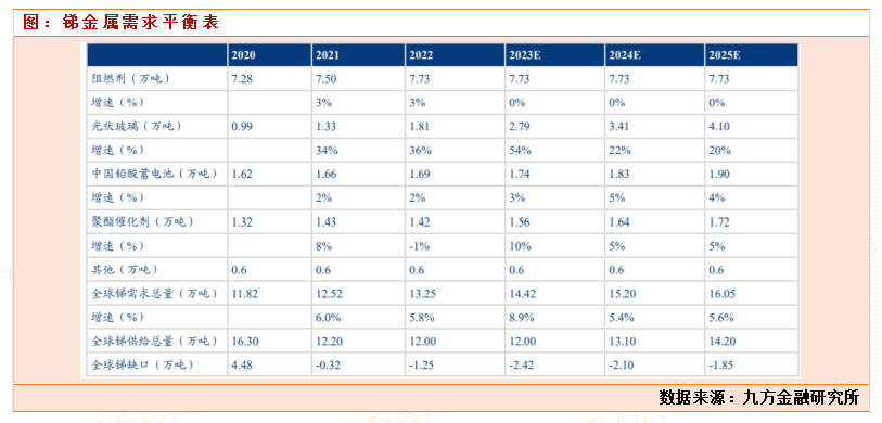 随着光伏行业的需求是逐步提高的,全球光伏装机是保持较高的增长速度,预期未来锑在光伏领域需求量还会增大。2024年,锑金属全球需求在14-15万吨左右,而供给端12-13万吨,供需缺口明显,而且随着光伏行业装机的不断增长,这个缺口还会持续扩大。