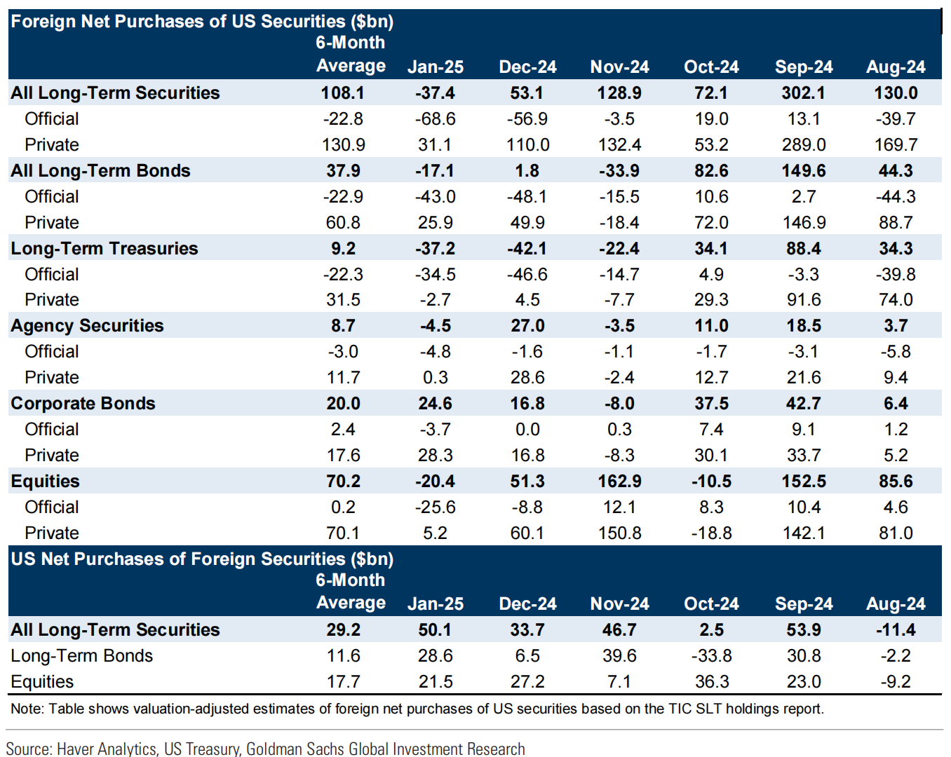 高盛表示这颇为正常, 由于当前美国治理和制度的结构性恶化正在侵蚀美资产的特权地位,叠加美国与G10国家之间利差缩小,若海外央行逐步将美债投资多元化至其他G10国家货币资产,符合其长期资产配置目标,也并不令人意外。