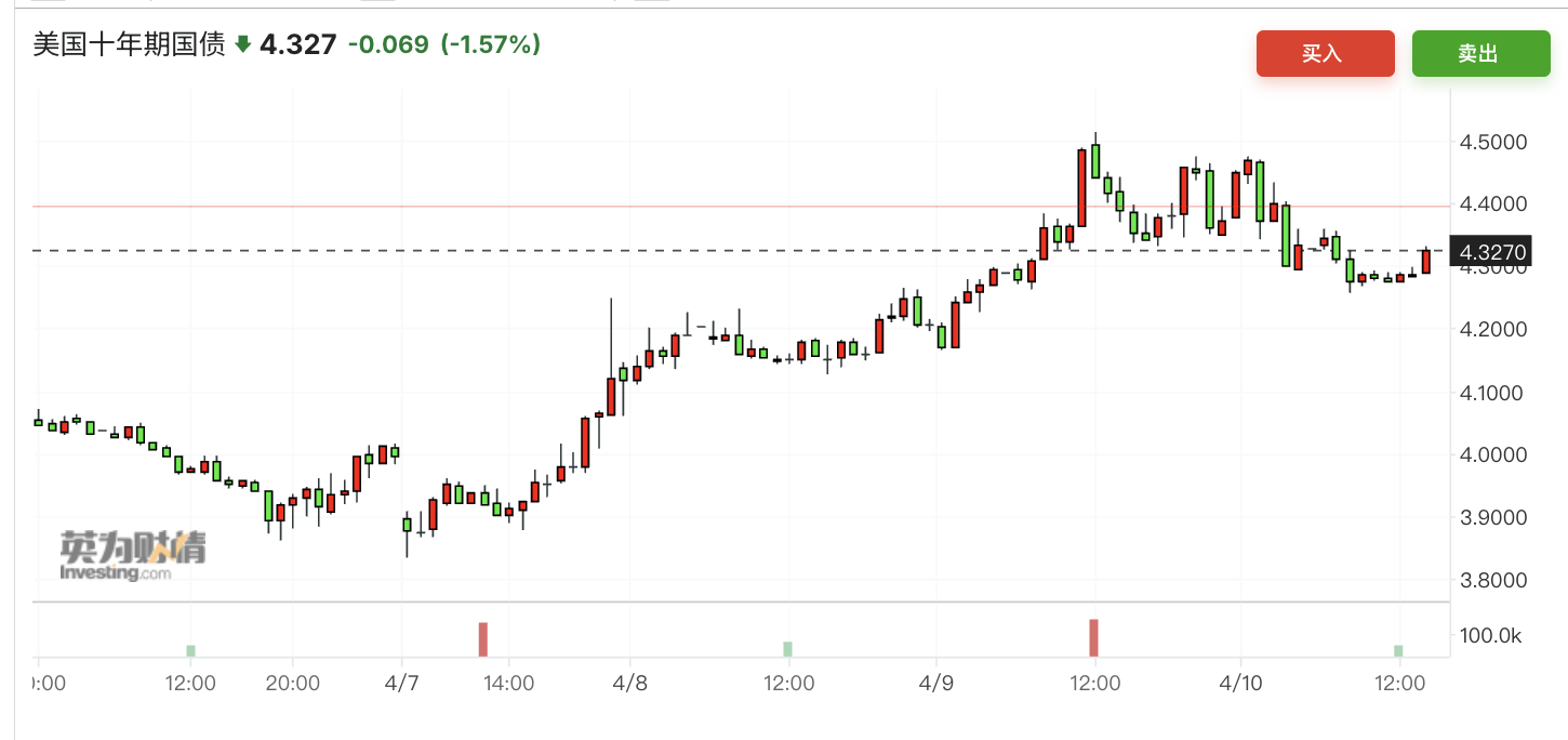“所幸,美国总统特朗普对于延迟关税的声明恰逢周三美国10年期国债拍卖的关键时点,缓和了市场压力,拍卖结果较为顺利,推动收益率下行。否则如果像周一的3年国债拍卖结果一样惨淡,可能会引发风险。比起股市,降低债券收益率(融资成本)可能才是特朗普的核心指标,债券收益率的飙升可能真正触动了特朗普的神经。”资深华尔街投行人士冯磊(Mitch Feng)对第一财经记者表示。