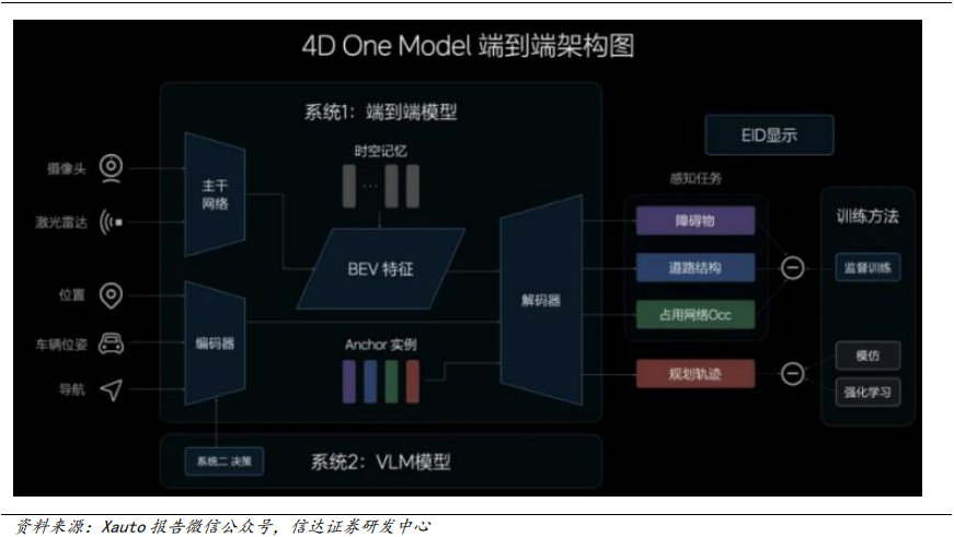 小鹏5月发布AI天玑系统,成为首个落地量产端到端大模型的车企。AI天玑系统是一个将AI技术全面应用于智能座舱与智能驾驶的操作系统,核心功能包括 AI 小 P(升级了LLM的AI助理)、AI司机(包括 AI 代驾、AI 泊车、XNGP 等智能驾驶功能)、AI保镖(车辆环境的大范 围感知及预警)。此次升级XNGP升级了模块化端到端模型,主要由 XNet 感知神经网络、 XPlanner 规划控制大模型以及 XBrain大语言模型组成。