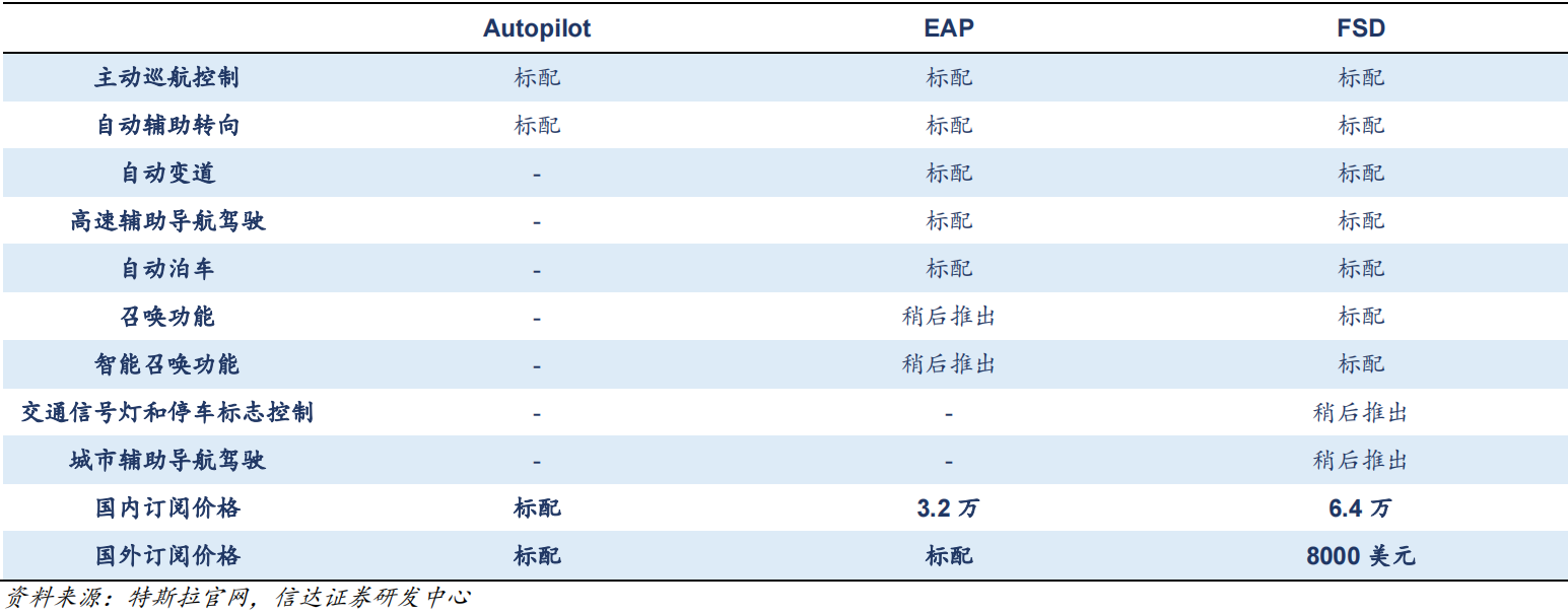 自动驾驶软件版本迭代方面,2013年特斯拉开始 Autopilot研发,主要功能包括主动巡航控制、自动辅助转向等;2020年开始 FSD Beta 开启内测,2023年12月,FSD V12 测试版升级单一端到端神经网络,2024年3月FSD Beta 更名为FSD Supervised(有监督的自动驾驶),在性能、安全、法规遵从方面持续突破,落地进程有望加速。