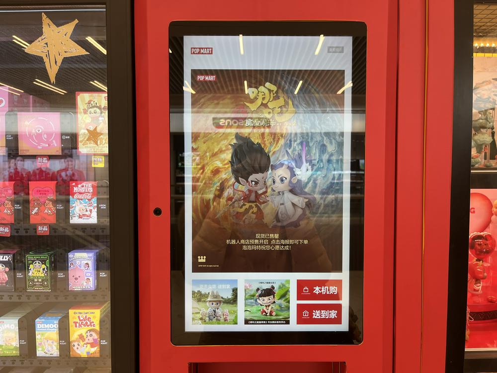(泡泡玛特线下盒机开启《哪吒2》周边预售 财联社记者摄)