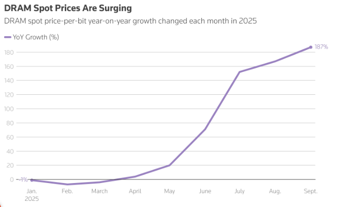 另一方面,存储芯片价格飙升可能给消费电子和服务器制造商带来额外成本压力。这些企业本就因美国提高关税和稀土短缺引发的潜在供应链中断而成本攀升。
