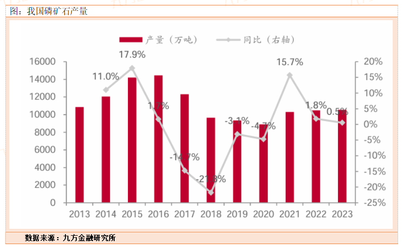 我国每年磷矿是产量在1亿吨左右,而我国的磷矿石储量目前只有38亿吨,最多只能供开采30多年,叠加我国的磷矿石品位要远低于海外,所以我国在2016年就将磷矿纳入战略开采资源。对其实行严格的开采管制。