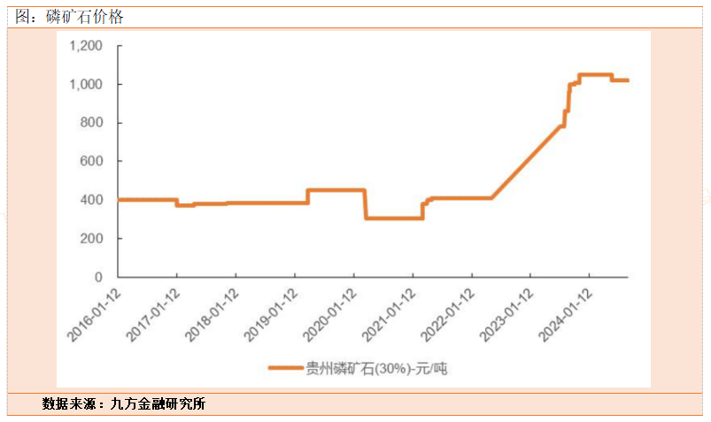 2024-2026年 国内磷矿石产量预计分别新增79、351、488万吨,对应当年度磷矿石产量分别为10610、10961、11449万吨。进出口上看,根据海关总署, 2024 年1-7月,国内磷矿石进出口量约108.7和4.4万吨,同比+42.7% 和-78.5%。我国每年都在加大对海外磷矿石的进口,基本对外出口磷矿石。未来随着国内磷矿资源的减少,每年从海外进口磷矿的量会加大,而从海外进口,需要海运费,价格要普遍高于国内磷矿石价格,从目前海关公告数据,从海外进口国外磷矿石的价格在每吨200美元至400美元之间波动。也就是说海外进口的价格这个成人民币要在1400元/吨以上。