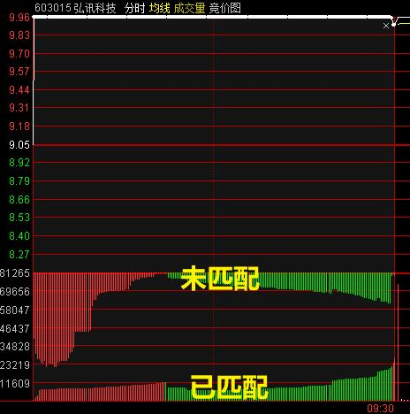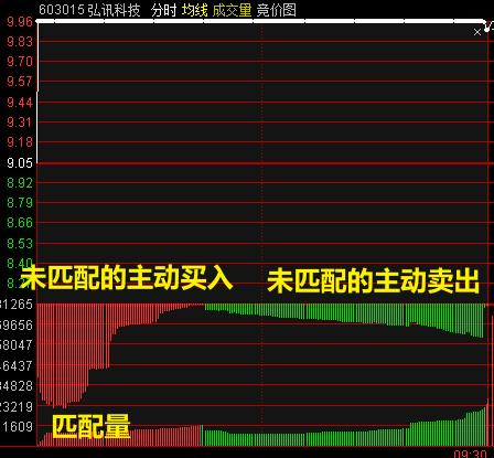 3、集合竞价量能柱上下方区别上方表示的是未匹配的量,下方表示的是已匹配的量
