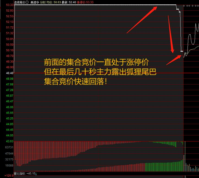 1、9:15-9:20这五分钟是开放式集合竞价,大家需要记住这时段的是可以撤单的,因此我们看到的成交量都是假的,而且很多主力为了吸引小散接货,往往在9点19分40秒甚至更晚才撤单,因此不到最后我们都不能掉以轻心,要随时做好撤单准备。