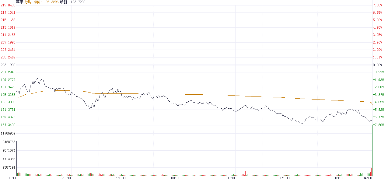 受以上消息影响,在美股上市的苹果(AAPL.US)于上周五大跌超7%。