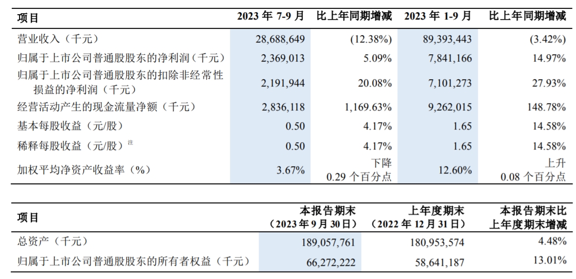 10月23日,中兴通讯公布2023年第三季度报告,第三季度公司实现营业收入286.89亿元,同比下降12.38%,实现归属于上市公司普通股东的净利润23.69亿元,同比增长5.09%。