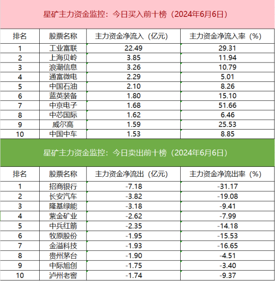 从个股主力资金监控数据来看,主力资金净流入前十的个股中芯片股较多,工业富联净流入居首。