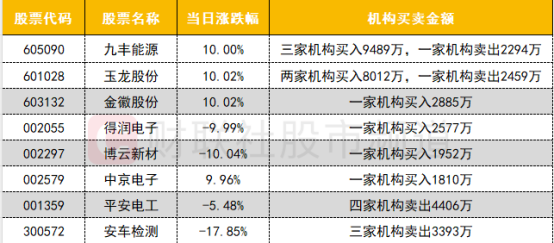 龙虎榜机构活跃度有所提升,买入方面,航运股九丰能源获机构买入超9000万;黄金概念股玉龙股份获机构买入超8000万。
