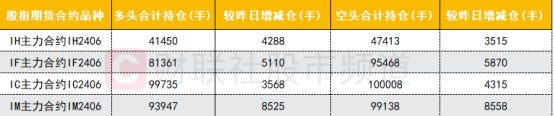 四大期指主力合约多空双方均大幅加仓,IH合约多头加仓数量较多;IF、IC合约空头加仓数量较多;IM合约多空双方加仓数量基本相当。