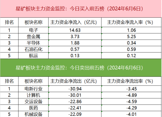 从主力板块资金监控数据来看,电子板块主力资金净流入居首。