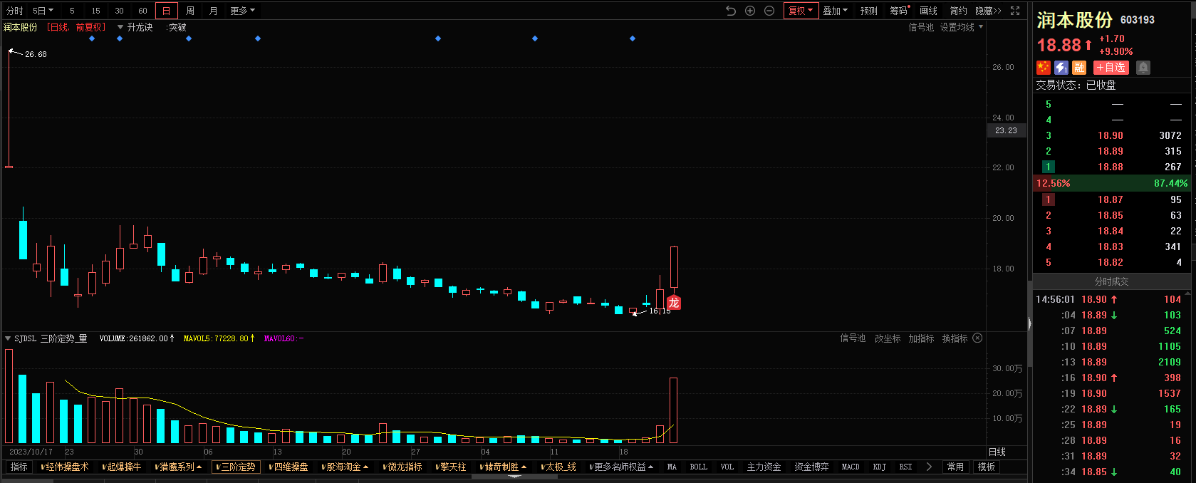 3)参考技术指标:润本股份-升龙诀指标-出现龙信号