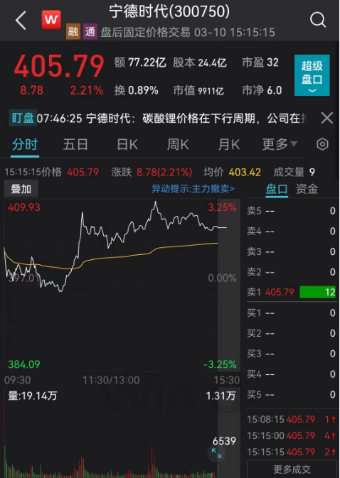 宁德时代今日上涨逾2%。