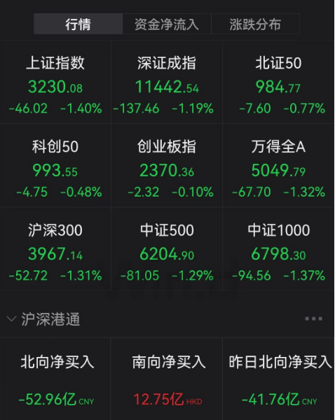 3月10日,A股低开后震荡回落,沪指跌超1%,创业板低位股仍较为活跃,逾10股涨超10%。截至收盘,沪指跌1.4%,深证成指跌1.19%,创业板指跌0.1%。北向资金全天净卖出52.96亿元,其中沪股通净卖出25.75亿元,深股通净卖出27.21亿元。