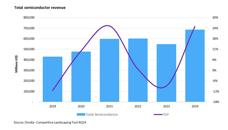 Omdia:人工智能催生强劲需求 2024年半导体市场收入激增约25%