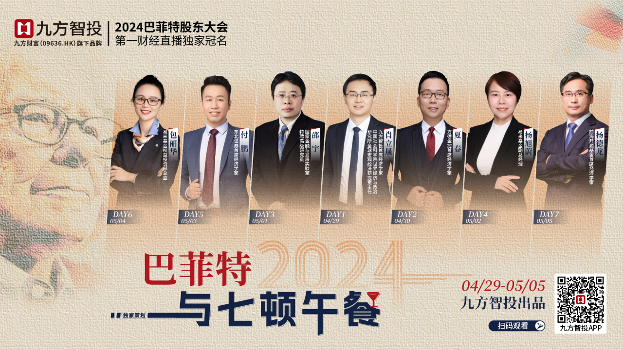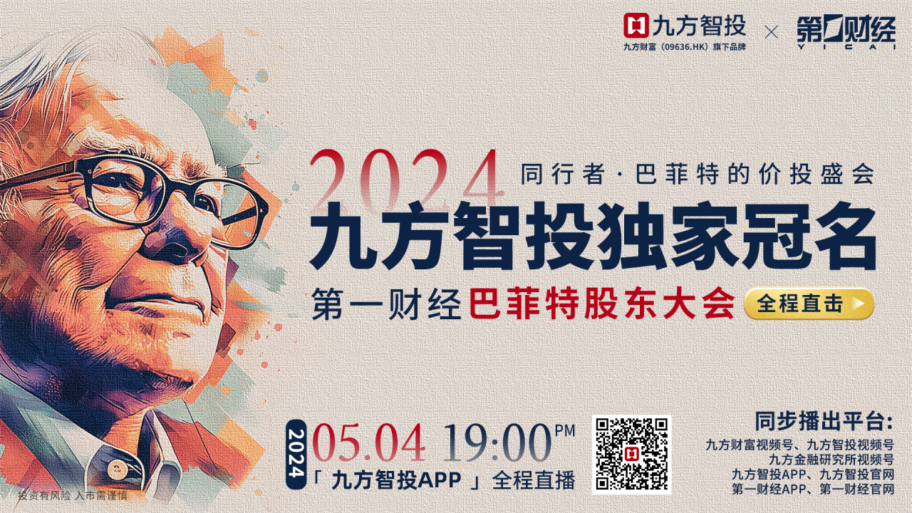 今年,领先的在线投资决策解决方案提供商九方财富(09636.HK)旗下品牌九方智投,将作为第一财经2024巴菲特股东大会直播的独家冠名商,第一时间带领不能亲临现场的投资者直击巴菲特及其同行者最新的洞见和感悟。