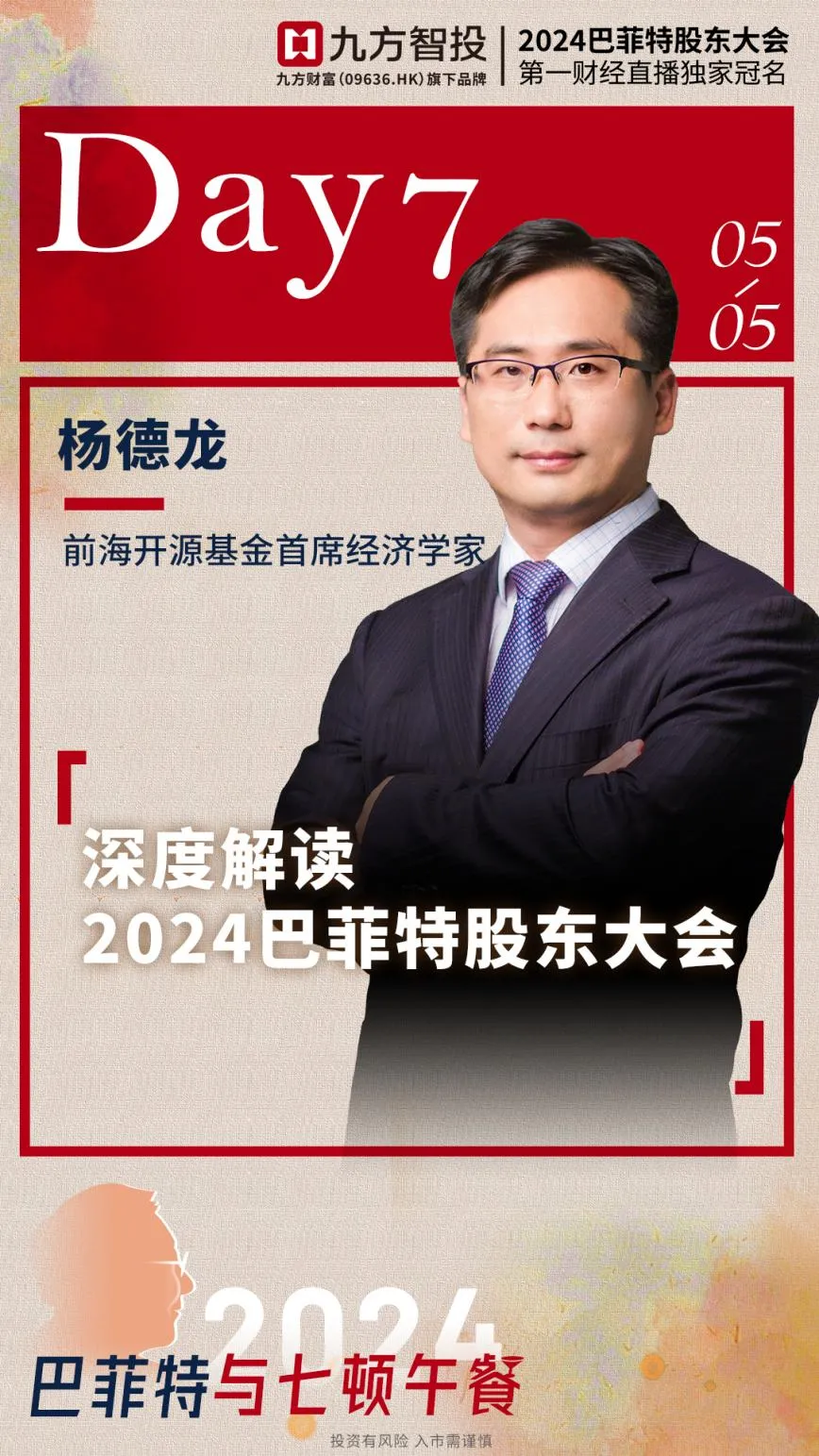 5月4日大会当天,前海开源基金首席经济学家杨德龙将深入第一线,前往美国奥马哈现场参加巴菲特股东大会,直面听取股神的真知灼见。九方智投也会在巴菲特股东大会闭幕后第一时间邀请他对巴菲特股东大会其中的精华部分展开分析,为投资者解构股神的投资智慧。