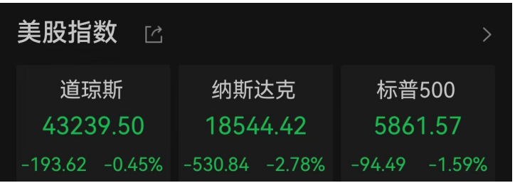 美股三大股指收跌!大型科技股、芯片股集体重挫