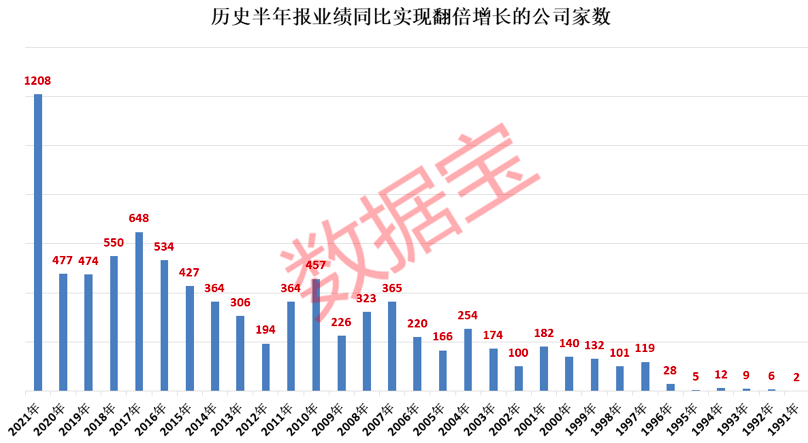 去年因疫情影响,上市公司业绩普遍受到重创。随着经济的复苏,今年上半年上市公司打了一场漂亮的翻身仗。剔除今年6月30日之后上市的次新股,上半年实现盈利的上市公司有3809家,占比近九成。业绩翻倍增长的上市公司达到1208家,创历史同期最高纪录。