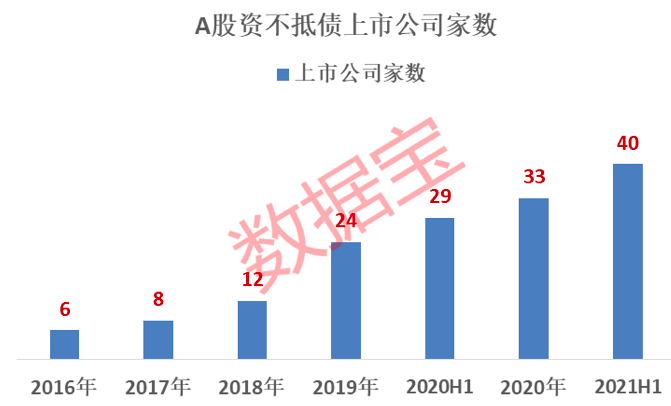 截至二季末A股共有40家非金融上市公司资不抵债,其中38只为ST股,资不抵债公司数量较上年同期增加了11家,*ST商城、*ST猛狮已连续三年中报资不抵债。